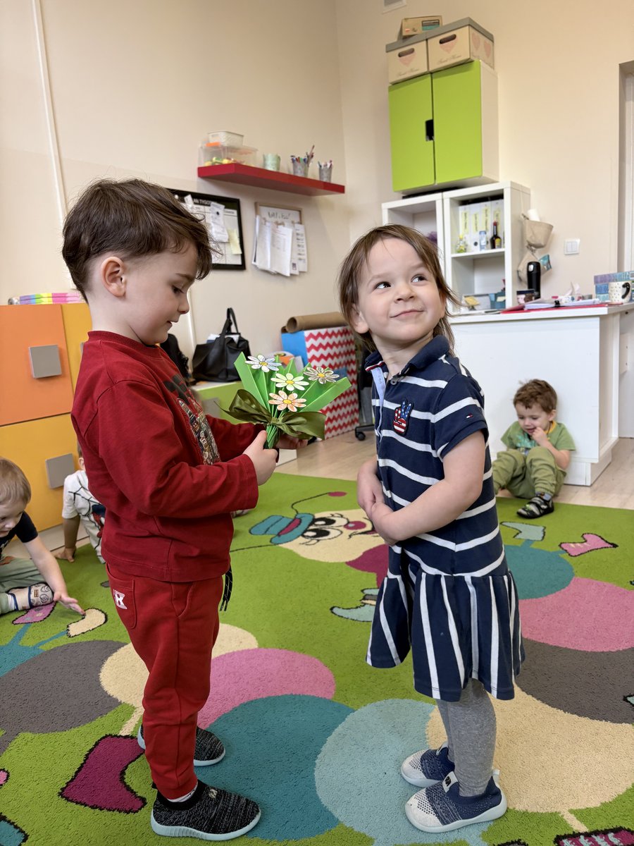 Dziś w przedszkolu obchodziliśmy dzień kobiet! Z tej okazji chłopcy wręczyli dziewczynkom własnoręcznie wykonane papierowe bukiety kwiatów, przygotowali mini SPA oraz wręczyli drobne upominki, życząc im wszystkiego dobrego w tym dniu.💐