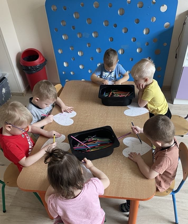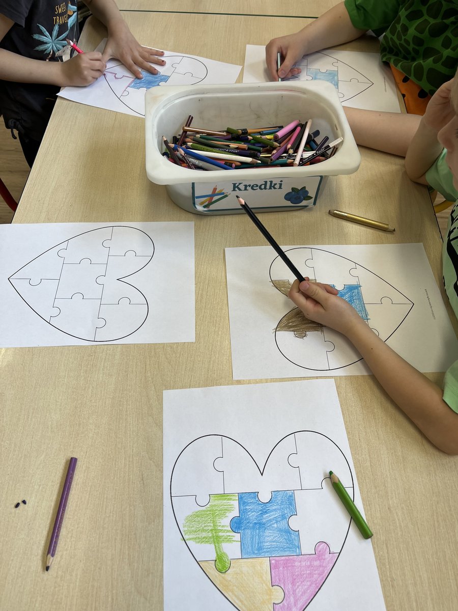 Dziś dzieci pokolorowały serca z puzzli – symbol różnorodności, zrozumienia i akceptacji. Te kolorowe serca zawisły w całym przedszkolu jako znak, że jesteśmy razem, choć każdy z nas jest inny. Zostaną z Nami na dłużej, bo Kwiecień to Miesiąc Świadomości Autyzmu💙💙🦋