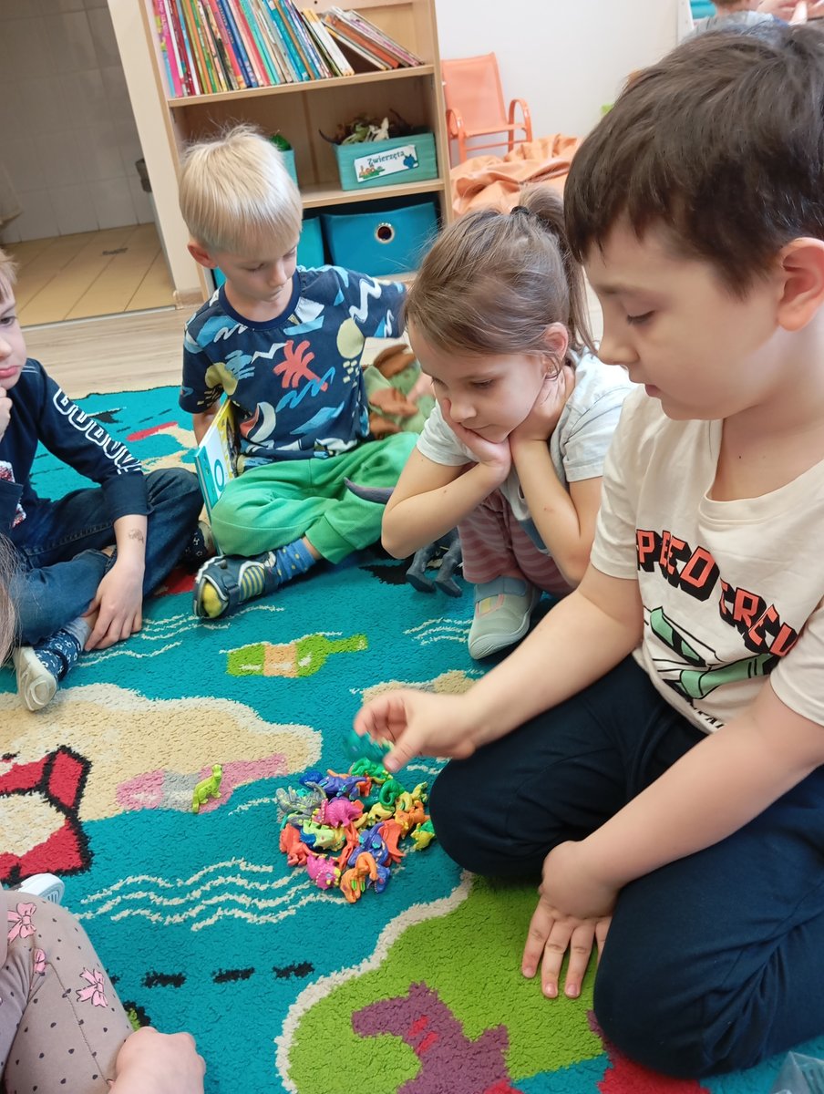 Dziś, w ramach tygodnia zajęć,, Ziemia-błękitna planeta” dzieci dowiedziały się wiele informacji na temat życia dinozaurów na Naszej planecie.